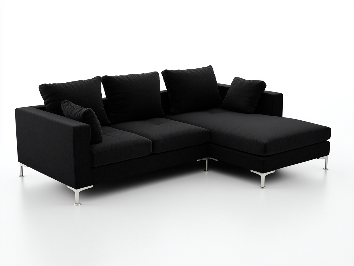 Divano angolare moderno dalle linee pulite, pensato per ambienti contemporanei.