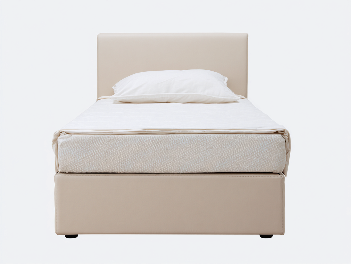 Letto singolo dal design moderno con contenitore integrato, ideale per camere luminose e funzionali.